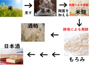 酒粕は米麹に酵母と乳酸菌を加えて発酵させることで生まれます。