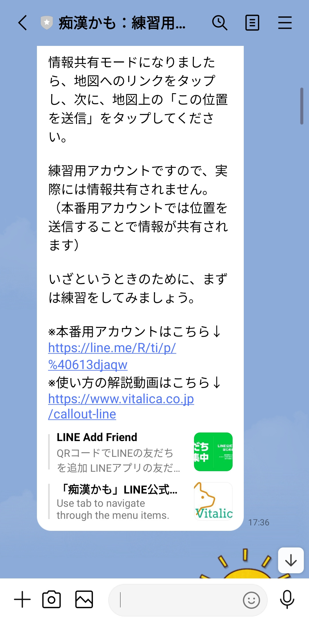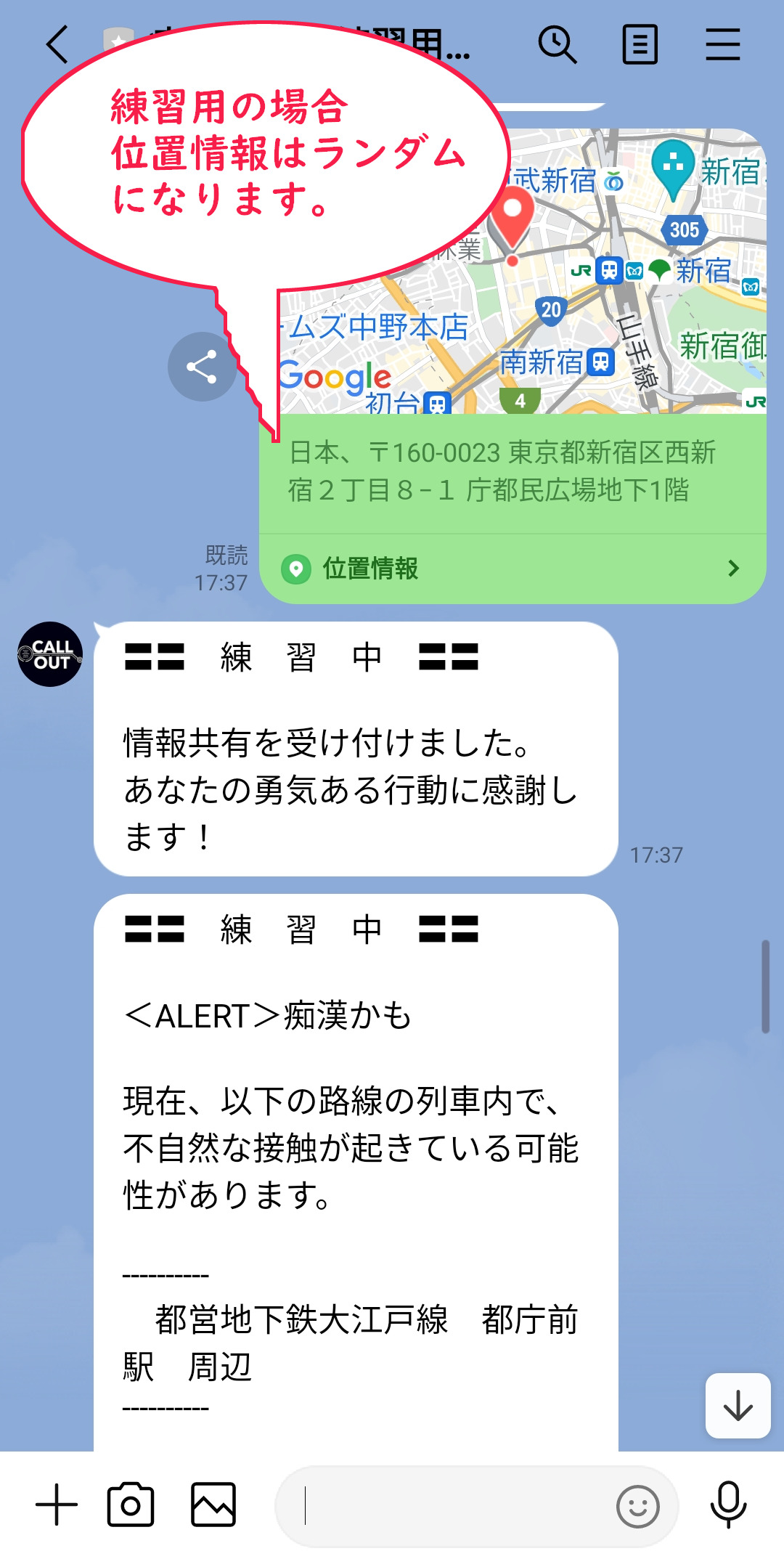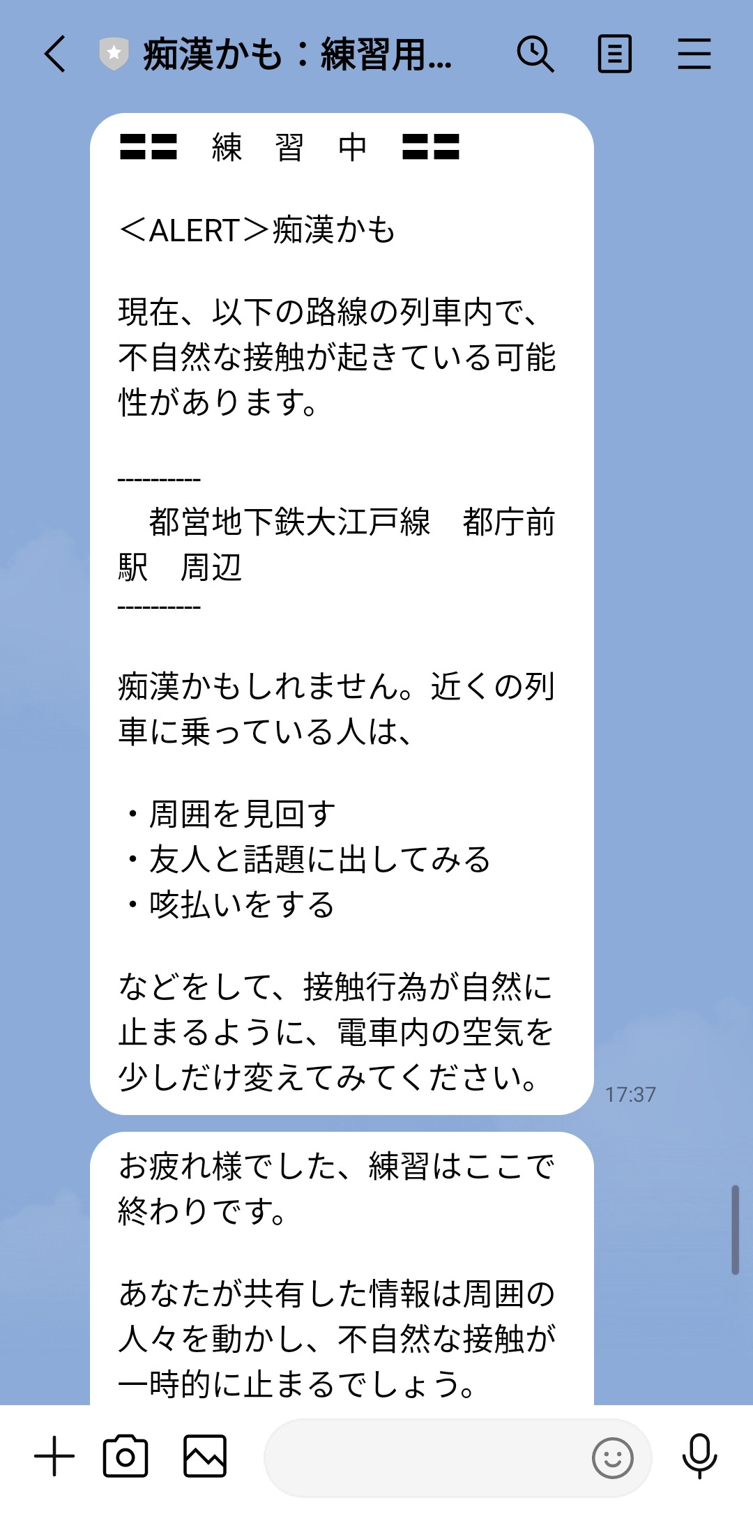 参照:「痴漢かも:電車内<不自然な接触>情報共有」LINE公式アカウント(リンク先:Vitalica株式会社)